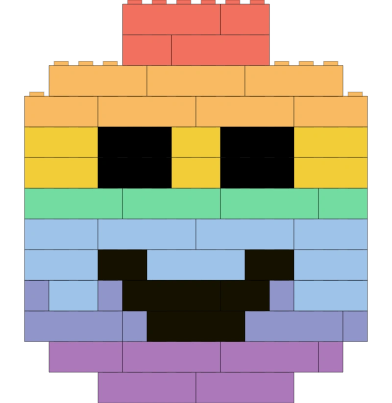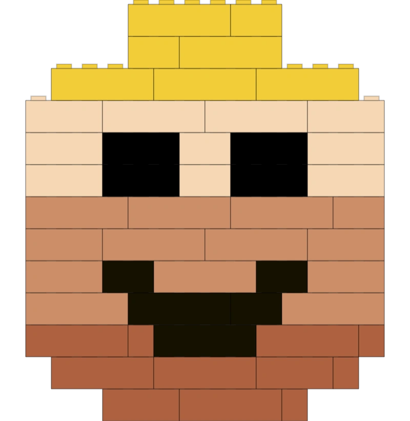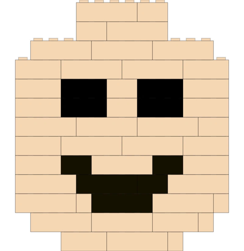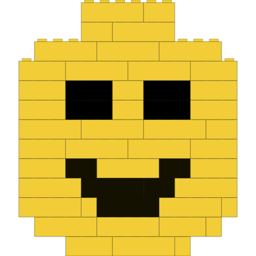 Tunnuskuva on LEGO-minihahmon pää rakennuspalikoista koottuna. Neliömuoto sopii sosiaalisen median profiileihin ja sovelluskuvakkeisiin.