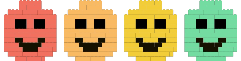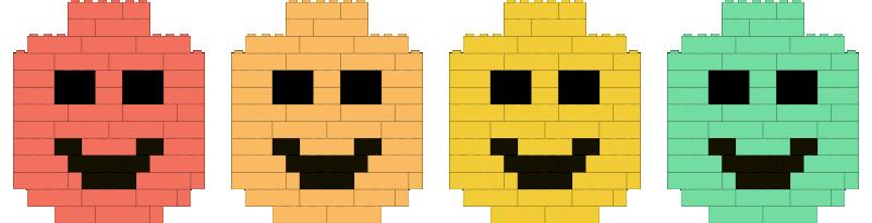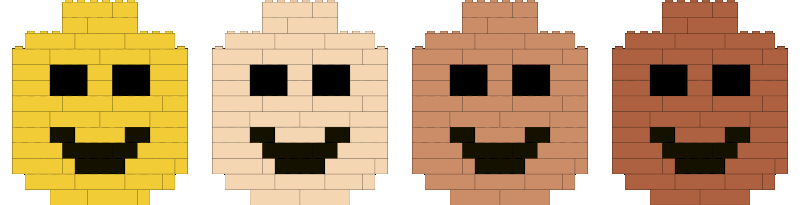 Neljä virallista LEGO®-ihonsävyä edustavat erilaisia ihonsävyjä.