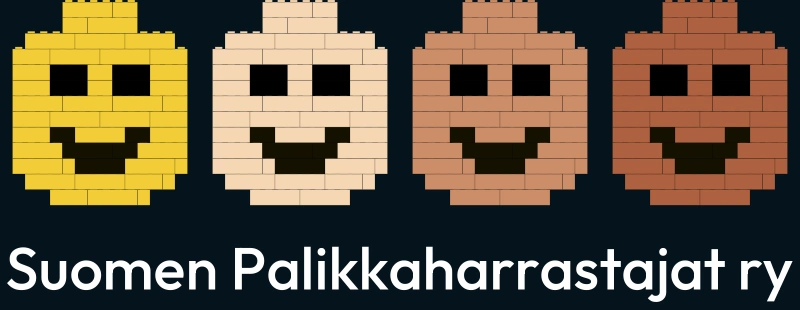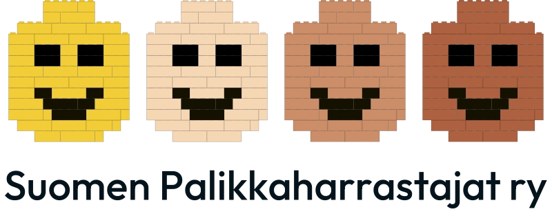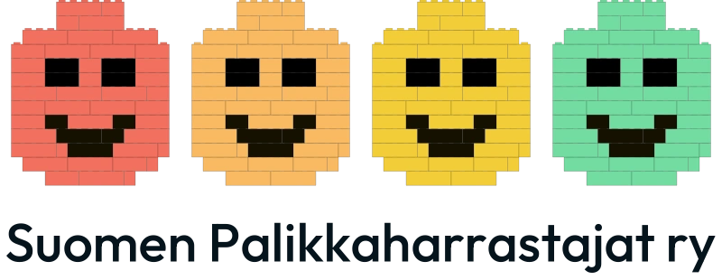 Neljä minihahmon päätä vierekkäin rakennuspalikoista koottuna. Vaakaversio tekstillä sopii esitteisiin, nettisivuille ja muihin konteksteihin, joissa yhdistyksen nimi halutaan näyttää logon yhteydessä.